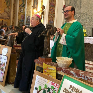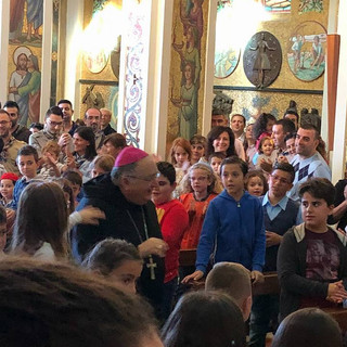Grande festa domenica 22 ottobre, per la visita dell'arcivescovo Mons Giuseppe Morosini alla nostra comunità parrocchiale. Ad accoglierlo, oltre al Parroco Mons. Giacomo D'Anna, circa duecento bambini e ragazzi con un tripudio di gioia e di festa. La presenza attesissima è graditissima del nostro Pastore che nell'occasione ha anche inaugurato ufficialmente e solennemente il nuovo Anno Pastorale 2017/2018 e celebrato il mandato per tutti gli operatori parrocchiali che lavorano con assiduità e impegno nelle varie attività pastorali all'interno dei numerosi gruppi e movimenti laicali che vivono e operano in parrocchia. Non c'era modo migliore di iniziare l'anno della comunione con questa solenne e partecipata Celebrazione che è stata davvero una prova tangibile che è davvero possibile vivere con gioia nell'unità e nella pace con Dio e con i fratelli.